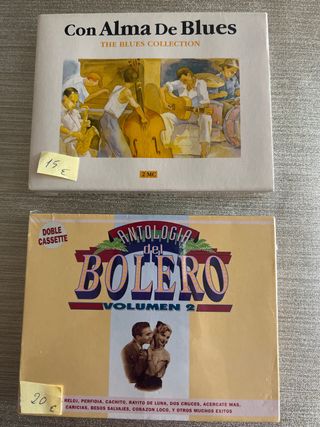 Cassettes colección dobles. Música blues y boleros. Están sin estrenar en su embalaje original. Precio marcado de cada uno en la foto los dos juntos 32€.