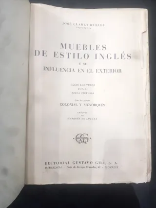 Libro antiguo de 1945 sobre el mueble inglés, del arquitecto José Claret Rubira