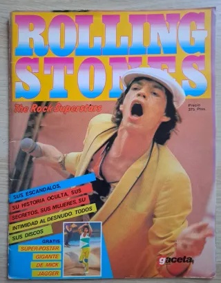 ¡Joyita para coleccionistas de los Stones! 🎸 Ejemplar histórico de la serie "The Rock Superstars" dedicado a los Rolling Stone. Especial Mick Jagger publicado por Gaceta Ilustrada en 1982. Es una pieza difícil de encontrar en estas condiciones. Estado: Muy bueno/Excelente. La revista está completa, sin recortes, sin hojas sueltas y con los colores de la portada muy vivos. El lomo está bien conservado. Contenido: Reportajes exclusivos de la época, fotos icónicas de Mick Jagger, discografía detallada y curiosidades de sus giras de los 80.