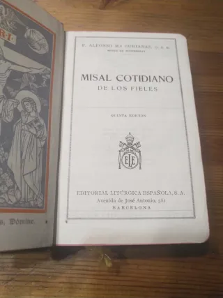 Misal cotidiano de los fieles p.Alfonso Gubianas monje de Montserrat 2941,Oficio de la semana santa 1911, Visitas al Santísimo sacramento 1918, Pequeño misal de los niños que aman a Jesús 1940,Misal romano edición manual para uso de los fieles 1949