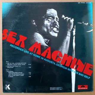 Vinilo de James Brown Sex Machine, grabado en directo. Edición 1974 en buen estado, pequeños signos de uso en la portada, el disco está perfecto. Recorded Live at Home in Augusta, Georgia with His Bad Self.