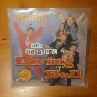 Single de 45 RPM de Cliff Richard y The Young Ones. - Título: Living Doll. - Año de publicación: 1986. - Incluye la colaboración de Hank Marvin.
