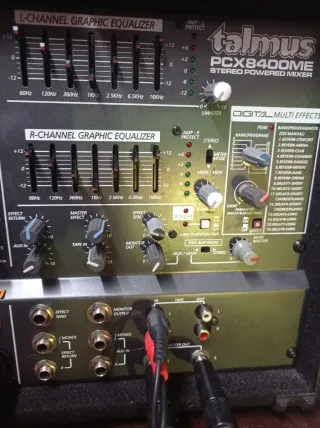 Mesa de mezclas autoamplificada Talmus PCX8400ME. - 8 entradas - Ecualizador gráfico 7 bandas L-Channel. - Ecualizador gráfico 7 bandas R-Channel.