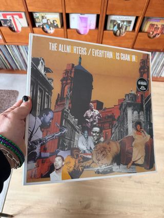 Vinilo del álbum Everything Is Changing de The Allnighters. Puro R&B-Soul - Género R&B y Soul. - Portada con collage artístico.