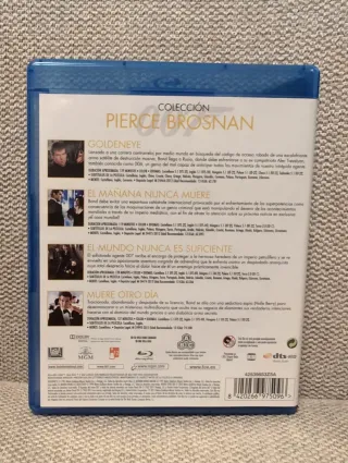 Colección de películas de James Bond protagonizadas por Pierce Brosnan en formato Blu-ray. - Incluye películas de acción, suspense y thriller. - Audio en español. Goldeneye, el mañana nunca muere, el mundo nunca es suficiente y muere otro día. Estado impecable