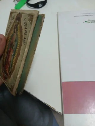 Un antiguo libro religioso en buen estado, cuyo precio es de 130 céntimos.