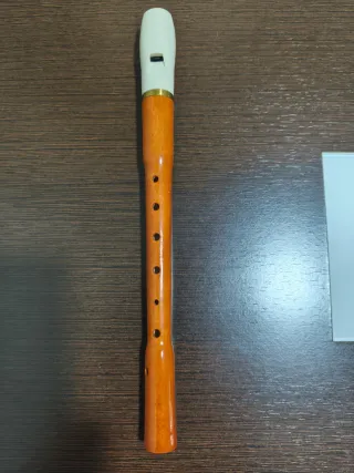 Flauta dulce soprano de madera, ideal para estudiantes. - Material: Madera y plástico. - Características: desmontable. - Tipo: Soprano. - Uso: Escolar. - Estado: perfecta, sin tara. - Calidad: muy buena.
