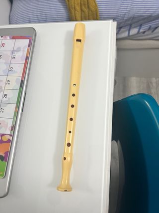 Flauta dulce de color crema, ideal para aprender música. - Fabricada en plástico resistente. - Diseño clásico con agujeros para notas.