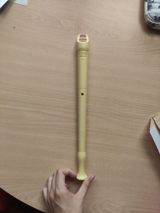 Flauta dulce en color beige, ideal para principiantes. Es de plástico y se encuentra en buen estado. Se regala funda de tela. - Perfecta para clases de música. - Fácil de usar y transportar. - Material resistente y ligero.