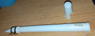 Flauta de saxo de la marca Muslady en color blanco. Incluye su tapa protectora. Se le regalo soplo un par de veces y como no sabe ,ahí se quedó ,como nuevo - Color blanco. - Marca Muslady. - Funda protectora incluida.