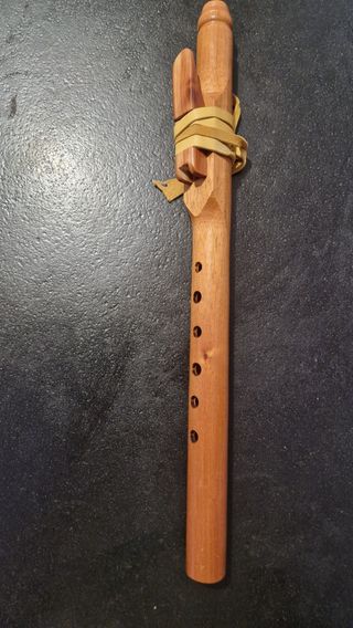 Flauta nativa de madera de cedro en tonalidad La. Fabricada en Estados Unidos por el lutier Mark Purcell.