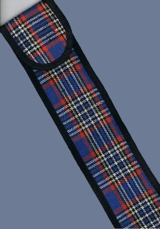 Funda textil acolchada con un diseño de cuadros escoceses en tonos azules, rojos y blancos. El borde exterior es de color negro. La otra funda flauta escolar es diseño las Bratz W197