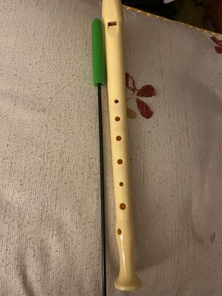 Se vende flauta dulce de color beige, ideal para iniciarse en la música. Incluye su funda protectora y una varilla limpiadora. - Flauta dulce de plástico. - Funda de tela color burdeos. - Varilla limpiadora con mango verde.