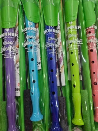 Se venden flautas dulces Hohner Melody Blockflöte en varios colores. - Marca: Hohner - Modelo: Melody Blockflöte - Colores: Morado, azul claro, azul oscuro, verde, rosa, fucsia y negro. - Incluye varilla de limpieza.