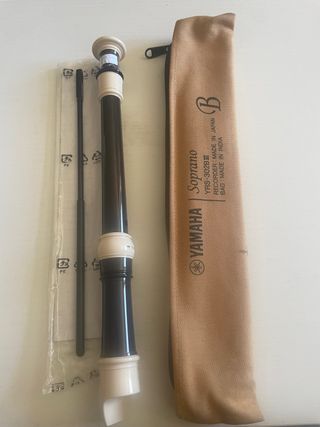 Flauta dulce soprano Yamaha YRS-302B, ideal para principiantes y estudiantes. - Modelo: Soprano YRS-302B - Fabricante: Yamaha - Material: Resina ABS - Color: Marrón y crema - Incluye funda de transporte.