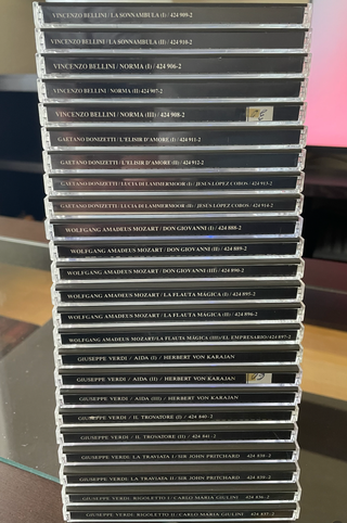 10 Operas de la coleccion "La Gran Opera", 24 CDs. Regalo libro de la encuadernacion de los fascículos explicativos. - Vincenzo Bellini - La sonnambula - Vincenzo Bellini - Norma - Gaetano Donizetti - L’elisir d’amore - Gaetano Donizetti - Lucia di Lammermoor - Wolfgang Amadeus Mozart - Don Giovanni - Wolfgang Amadeus Mozart - La flauta mágica - Giuseppe Verdi - Aida - Giuseppe Verdi - Il Trovatore - Giuseppe Verdi - La traviata - Giuseppe Verdi - Rigoletto Principales intérpretes y directores mundiales. Principales sellos discograficos: Decca, Philips y Deutsche Grammophon. Está nuevo, píídeme más informacion.