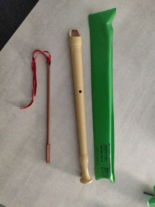 Tengo 2 flautas iguales Flauta dulce soprano en color beige, en buen estado. Incluye un limpiador de color verde lima. - Flauta dulce soprano. - Limpiador.