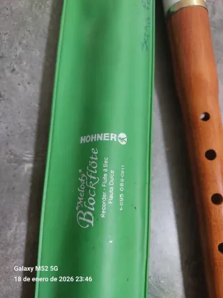 Flauta dulce marca HOHNER de madera, con funda y limpiador incluidos. Perfecta para estudiantes o para empezar a tocar sin complicaciones. Estado: buen estado general, lista para usar Marca reconocida en instrumentos de viento Incluye todo lo que se ve en la foto: flauta, funda y escobilla de limpieza - Flauta dulce Hohner. - Funda de tela azul. * lleva un nombre incrito con rotulador en la funda * - Escobilla de limpieza.