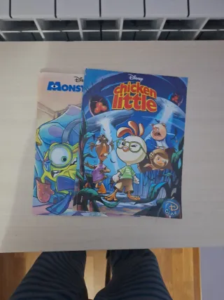 Los objetos de la imagen son libros de historietas que forman parte de colecciones de Disney, específicamente adaptaciones de sus películas al formato de cómic Este ejemplar es un cómic de la película Chicken Little, publicado en España como parte de la colección "Grandes Éxitos del Cine Disney" por la editorial Criteria Publishing alrededor del año 2006. Al igual que el anterior, este libro de Disney Pixar pertenece a la misma colección de "Grandes Éxitos del Cine Disney" de Criteria Publishing.
