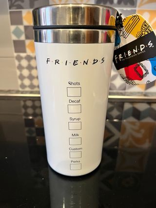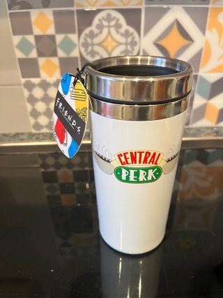 Termo blanco con el logo de Central Perk de la serie Friends. Ideal para llevar tus bebidas. - Diseño inspirado en la serie. - Acabado blanco.