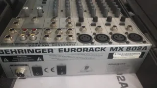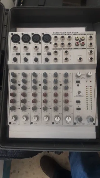 No incluye el cable de alimentación. Se puede encontrar por 8€ Mesa de mezclas Behringer Eurorack MX802A. - 8 canales. - Entradas XLR y jack. - Ecualizador de 3 bandas por canal. - Salida de auriculares.