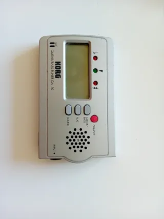 Afinador Korg GA-30 para guitarra y bajo. Compacto y fácil de usar. - Pantalla LCD. - Indicadores LED para afinación. - Botones de función: Sound, Flat, Guitar/Bass. - Conector de entrada (Input). - Micrófono integrado.