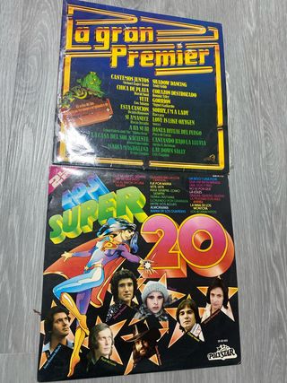 Colección de dos vinilos con grandes éxitos musicales. - La Gran Premier - Súper 20 - Incluye canciones de diversos artistas nacionales e internacionales.