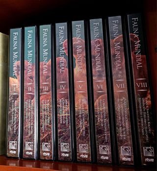 Conjunto de 8 cintas VHS de la serie documental Fauna Mundial. - Títulos incluidos: - I: Águila Real / El Jabalí - II: El Macho Montes / Fauna Australiana - III: El Hombre y la Tierra / Fauna de la Sabana - IV: Operación Anacona / El Mundo del Jaguar - V: Mi Amiga la Nutria / Focas - VI: La Maravillosa Fauna del Canadá / Ballenas - VII: Parque Natural Nahanny / Gorilas de Montaña - VIII: Parque Nacional Kijane / Rinocerontes