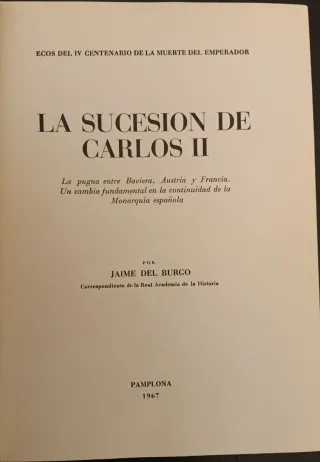 Título completo: La sucesión de Carlos II. Un cambio fundamental en la sucesión de la monarquía española. Editorial Gómez. Pamplona. 1967