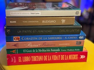 Lote de siete libros sobre BUDISMO: _El arte de la sabiduría - Dalai Lama _La mente en serenidad - Dalai Lama _Corazón de la sabiduria - K. Gyatso _La práctica del Bodisatva - Shantideva _El libro tibetano de la vida y la muerte - Sogyal Rimpoché _Budismo - Tom Lowenstein