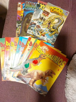 Cómics vintage: - Tierra de Dinosaurios año 1991.No reeditado.Tapa blanda. -Flesh año 1988.Tapa blanda -Xenozoic Tales.Tapa blanda. -Dinosaurios.Año 1992. Tapa dura. *Fasciculos Dinosaurios Planeta Agostuni números sueltos: 1,2,3,4,5,6,7,8,32,34,35.