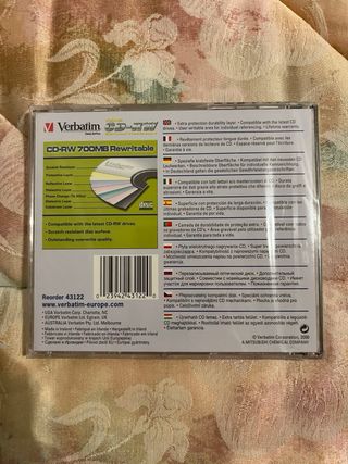📀 Imation CD-RW 700MB / 80 min (2000) 📦 Lote de 8 unidades precintadas 🟡 Caja original incluida, abierta y con signos de uso ⚙️ Características principales: • Capacidad: 700 MB / 80 minutos • Velocidad: 1x–4x compatible • Regrabables (CD-RW) • Uso: música, datos, fotos y vídeo 📐 Dimensiones caja: aprox. 14 × 12 × 10 cm 📦 Estado: CDs nuevos y sin usar, caja con desgaste exterior (ver fotos) ⭐ Ideal para coleccionistas retro, grabadoras antiguas y equipos clásicos #imation #cdrw #retrocomputing #cdgrabable #informatica #coleccion