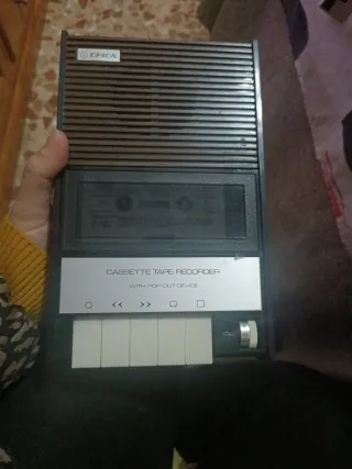 Grabadora de cassette de la marca Orion. Un dispositivo clásico para tus cintas. Funciona perfectamente pero hay que hacerle mantenimiento alguien que sepa para que vaya el funcionamiento mejor como engrasarlo ... - Diseño retro con rejilla superior. - Panel frontal con botones de reproducción y grabación. - Indicador de volumen con dial. - Etiqueta CASSETTE TAPE RECORDER WITH POP-OUT DEVICE en la parte frontal.