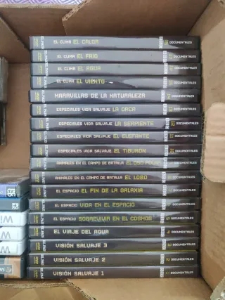 Colección de documentales de la BBC y El País en formato DVD. - El Clima: El Calor, El Frío, El Agua, El Viento - Maravillas de la Naturaleza - Especiales Vida Salvaje: La Orca, La Serpiente, El Elefante, El Tiburón - Animales en el Campo de Batalla: El Oso Polar, El Lobo - El Espacio: El Fin de la Galaxia, Vida en el Espacio, Sobrevivir en el Cosmos - El Viaje del Agua - Visión Salvaje: 3, 2, 1