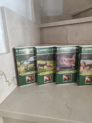 Colección de cintas VHS de la serie El Hombre y la Tierra de Félix Rodríguez de la Fuente. - La conquista del agua - El cervatillo - Operación zorro - Los señores del bosque - El abejarrruco - El lobo / El cazador social - Águila y alimoche - El juego de la caza: el turón