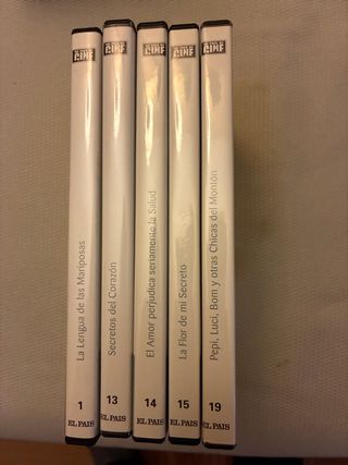 Lote de 5 DVDs de cine español de la colección de El País. - La Lengua de las Mariposas (1) - Secretos del Corazón (13) - El Amor perjudica seriamente la Salud (14) - La Flor de mi Secreto (15) - Pepi, Luci, Bom y otras Chicas del Montón (19)
