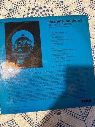 Disco de vinilo de Juanata de Jerez, Ultimos Cantes, con la guitarra de Parrilla de Jerez. - Género: Flamenco. - Sello discográfico: RCA.