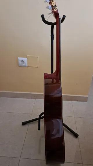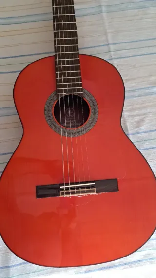 Guitarra de estudio de la marca Álvarez y Bernal, .con previo os1Su acabado en color rojo brillante le da un toque distintivo. - Modelo 404 - Acabado rojo brillante.