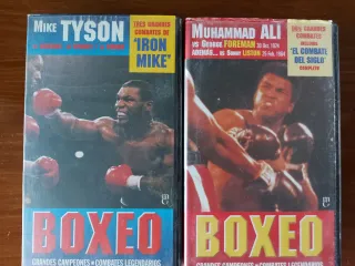 Dos cintas VHS de boxeo con combates legendarios. Incluye Tres Grandes Combates de 'Iron Mike' de Mike Tyson y Dos Grandes Combates de Muhammad Ali, incluyendo El Combate del Siglo. - Cinta 1: Mike Tyson - Cinta 2: Muhammad Ali vs George Foreman y vs Sonny Liston
