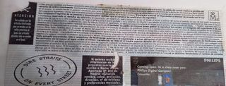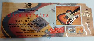 Entrada original para el concierto de Dire Straits. - Fecha: Miércoles 13 de Mayo. - Lugar: Estadio Vicente Calderón. - Artistas: Dire Straits y Was (Not Was). - Apertura de puertas: 18 h. - Inicio Was (Not Was): 20 h. - Inicio Dire Straits: 22 h. - Localidad General: 3800 pts (IVA incl.).
