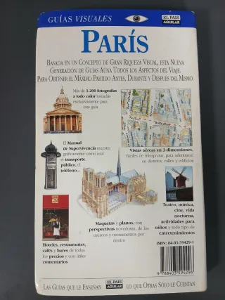 Libro guía en perfecto estado para realizar un viaje a París, completamente en español y sin nada escrito. Simplemente se le dio una visual leyendo,está prácticamente nuevo. Se compone de libro de 328 páginas más mapa de bolsillo complementario.