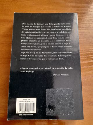 Rudyard Kipling. Debolsillo, 2007. Traducción de Verónica Canales. Introducción de Edward Said. 448 págs. Obra maestra de Kipling y una de las grandes narraciones de todos los tiempos, Kim cuenta la historia de Kimball O'hara, a quien todos llaman Kim, huérfano de un soldado del regimiento irlandés. La acción transcurre en la India colonial británica, donde el joven y astuto protagonista conoce a un lama tibetano que cambiará el curso de su vida. El lama se propone encontrar un río místico, y el muchacho decide acompañarle y guiarle, pero al mismo tiempo el viaje esconde una misión.
