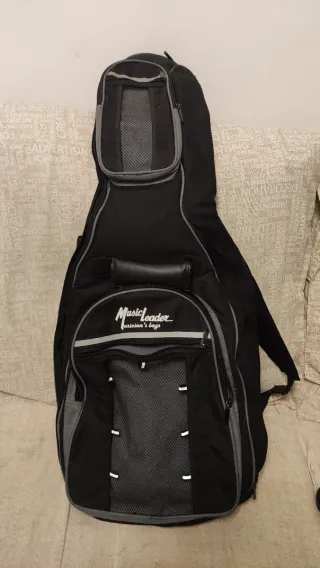 Funda para guitarra acústica de la marca Music Leader, usada y en muy buen estado. Un gran acolchado de calidad. Abertura total muy cómoda. Multiples bolsillos. Todas las cremalleras van bien, algunos mosquetones y piezas metálicas de las correas estan rayados, (ver fotos), funcionan perfecto. Algunas gotas de cola en un lateral exterior, (ver fotos) Se hacen envíos.
