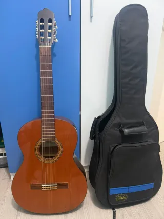 Guitarra española clásica con funda. - tiene golpe parte inferior ver foto, funciona perfectamente. - Cuerpo de madera. - Cuerdas de nylon. - Funda a cuadros incluida.