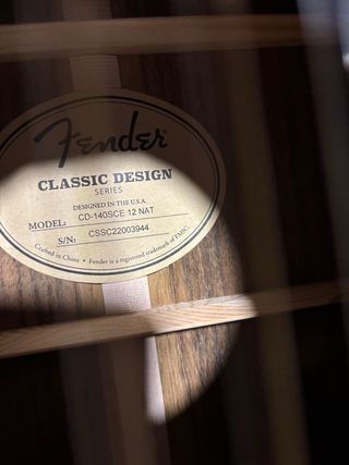 Guitarra acústica Fender Classic Design Series de 12 cuerdas. - Modelo: CD-140SCE 12 NAT. - Diseñada en EE.UU. - Fabricada en China. - Número de serie: CSSC22003944.