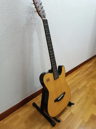Guitarra electro acústica James Neligan. Modelo EW3000N Cuerpo macizo, ideal para ensayar sin molestar, apenas suena sin enchufar. Por detrás tiene toma de auriculares y entrada auxiliar. Ecualizador de tres bandas y control de volumen. Solamente se ha usado en casa para practicar Se entrega con cuerdas recién cambiadas y con otro juego completo de repuesto - Soporte no incluido.