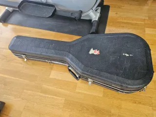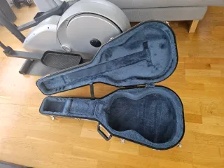 Funda rígida para guitarra acústica. Protege tu instrumento con este estuche. - Exterior de material resistente. - Cierres de seguridad. - Asa para transporte. interior en pelo azul protector, hay que repasar algun cierre pero esta bien.