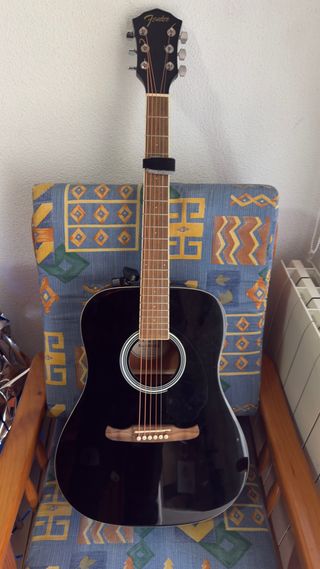 Guitarra acústica Fender en color negro. Ideal para principiantes o músicos experimentados. - Cuerpo de madera. - Mástil de madera. - Seis cuerdas metálicas.