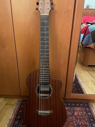 Guitarra acústica de la marca Cordoba, con su funda Formato 1/2, modelo Mini II MH-CE - Cuerpo de caoba. - Mástil de caoba. - Diapasón de palisandro. - Acabado natural satinado.