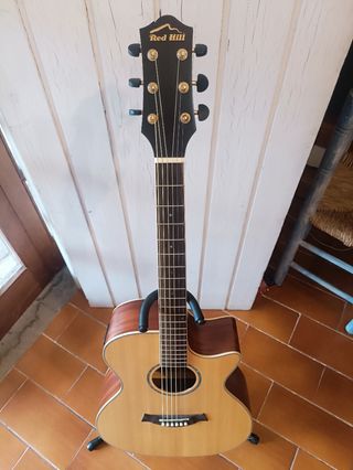Red Hill CF-720C EQ Natural Guitarra acústica con tapa de pícea maciza, cuerpo de caoba laminada y sistema de pastillas Diseño Grand Auditorium con cutaway Tapa de abeto macizo con ribete de arce y roseta de boca de un solo anillo Fondo y aros de caoba laminada Mástil de caoba con diapasón de maderas duras seleccionadas Cejuela y selleta de hueso Clavijero dorado con botones atornillados Sistema de pastillas Red Hill JM-6T con afinador integrado y ecualizador de 4 bandas. Guitarra económica con detalles de primer nivel Muy ligera y cómoda, con alma en el mástil regulable. Sonido potente y definido. NUEVA A ESTRENAR!!!